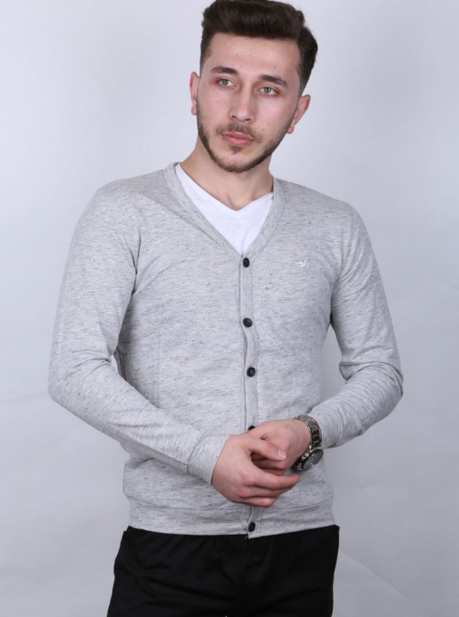 Düz Kırçıllı Düğmeli Erkek Günlük Hırka - S
