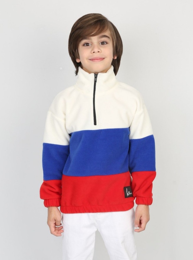Full Polar Kumaş Yarım Fermuarlı Garnili Erkek Çocuk Günlük Sweatshirt - 7-8