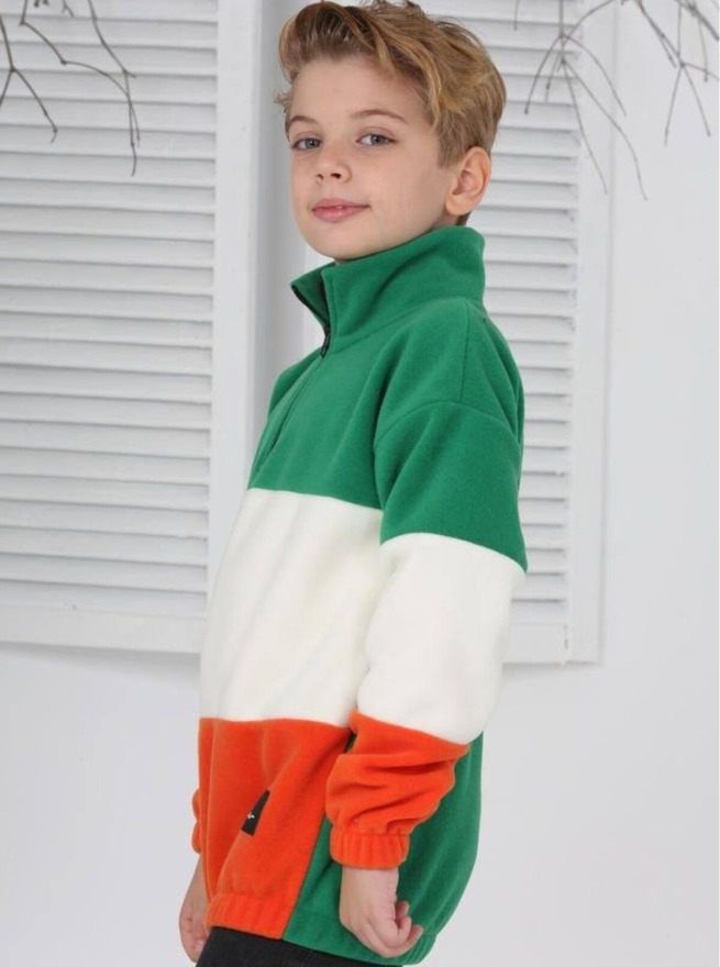 Full Polar Kumaş Yarım Fermuarlı Garnili Erkek Çocuk Günlük Sweatshirt - 7-8