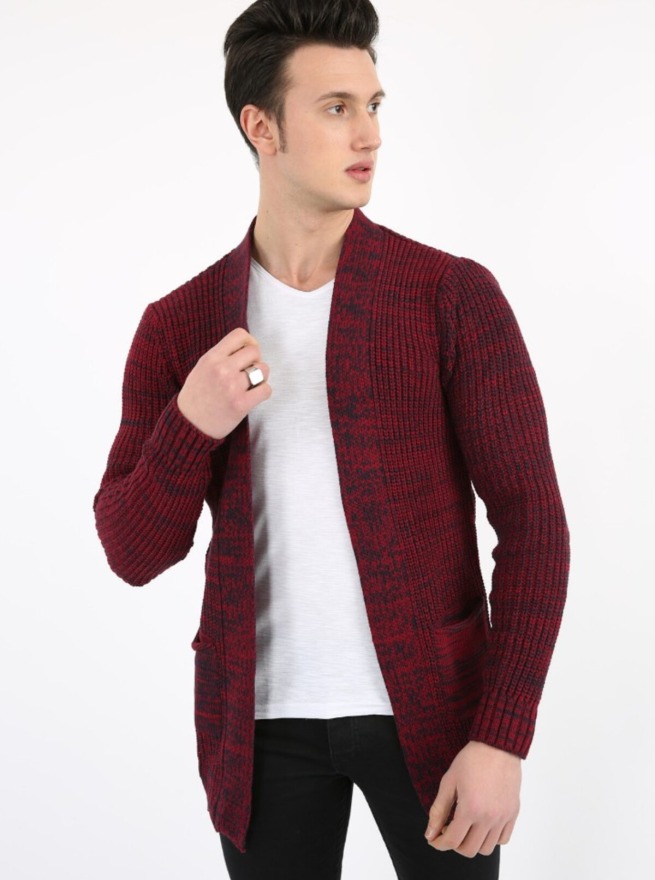 Önü Açık Cepli Kalın Erkek Günlük Triko Kazak Hırka - XL