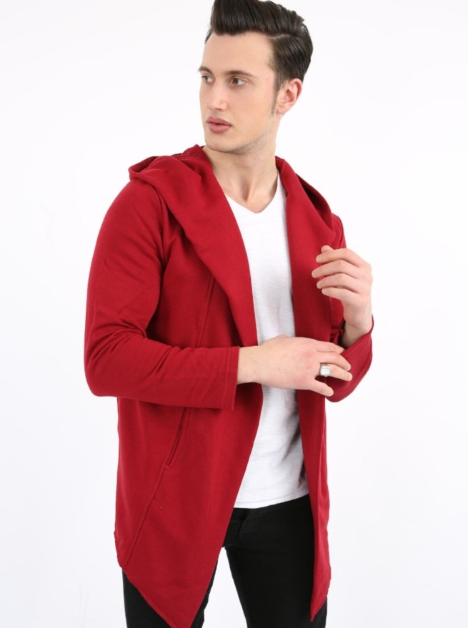 Üç İplik Şardonlu Kapşonlu Cepli Erkek Günlük Panço Hırka - XL
